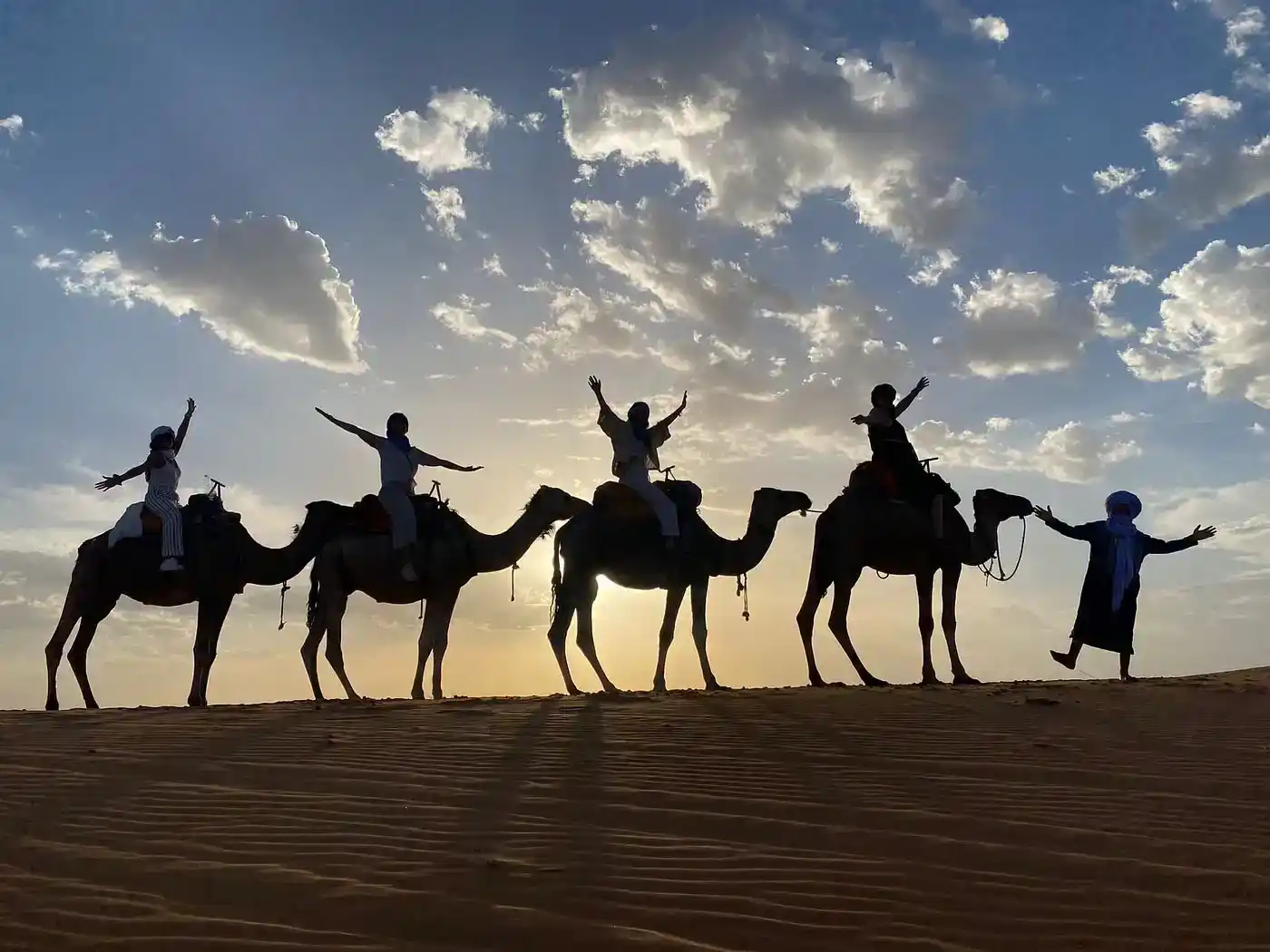 - Desierto de Merzouga: Experimenta la magia del desierto con un paseo en camello por las dunas de Erg Chebbi y disfruta de un espectacular amanecer o atardecer.